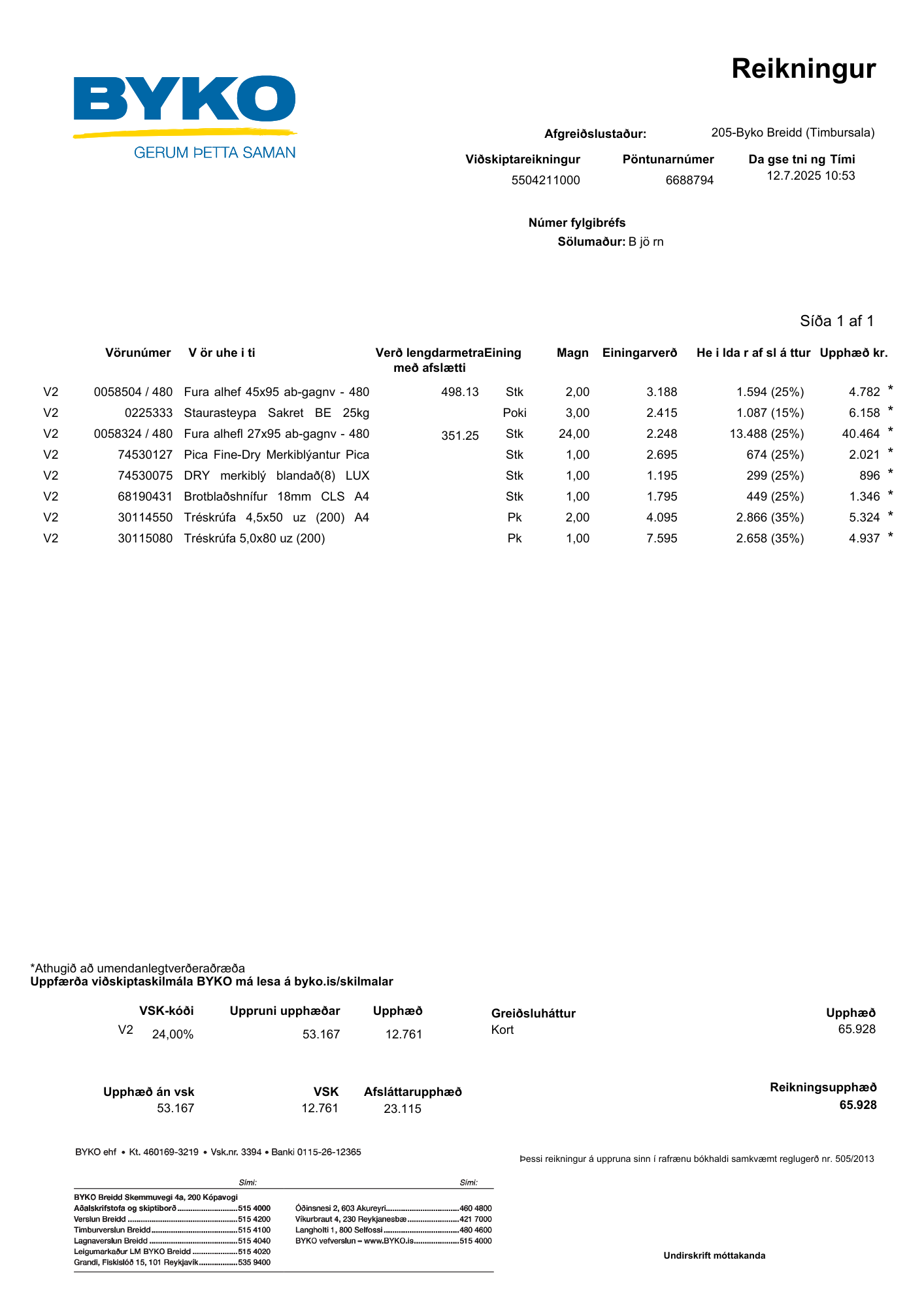 Bóki les og flokkar kvittunina